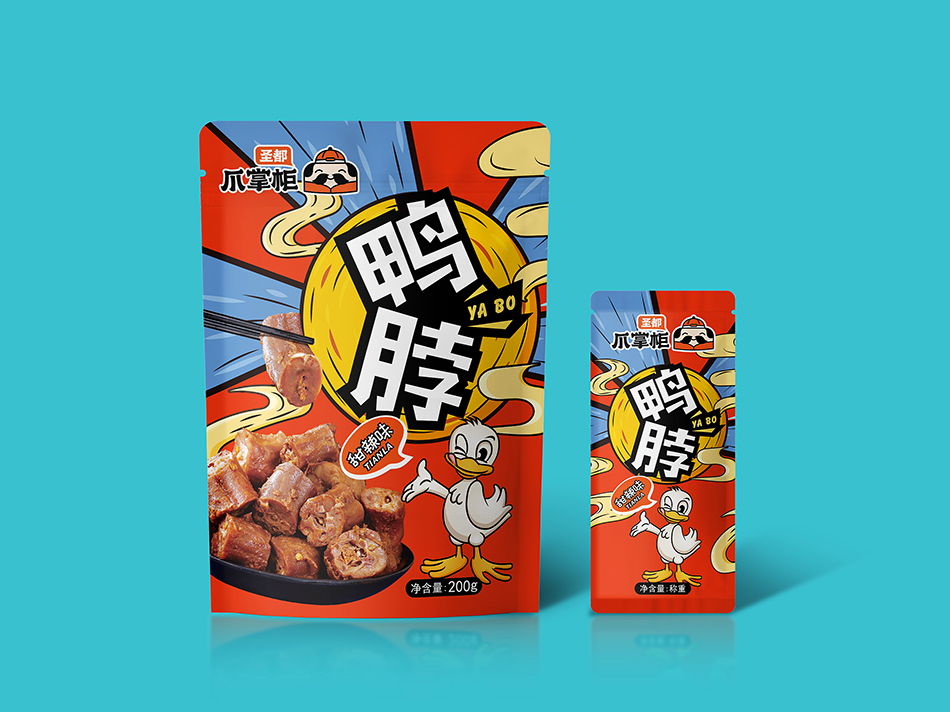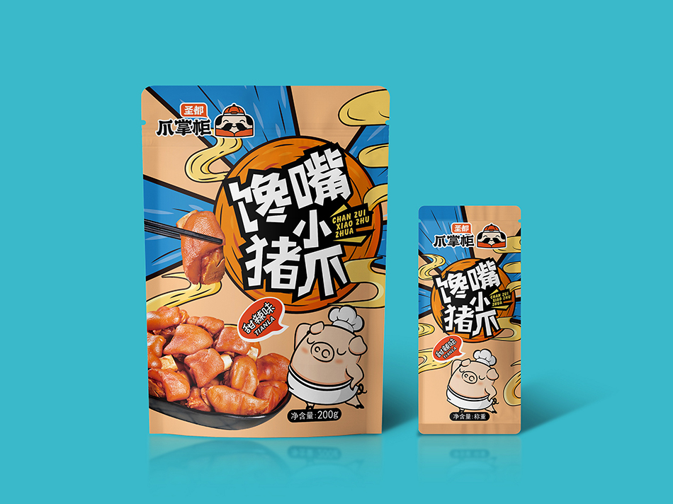圣都食品是一家專業(yè)生產(chǎn)研發(fā)銷售鹵味熟食的連鎖品牌。近30年的老品牌,6萬(wàn)多平方米的食品工廠,每日生產(chǎn)近200款熟食產(chǎn)品。全國(guó)600+門店和商超,通過(guò)強(qiáng)大的冷鏈運(yùn)輸體系。 2020年圣都熟食升級(jí)品牌“圣都爪掌柜”。主打爆品爪系列風(fēng)靡全城。麻辣無(wú)骨爪系列,檸檬無(wú)骨爪系列,鳳爪系列,全手工去骨工藝,完整保留筋肉,獨(dú)家秘制配方,口感更帶勁。 是也設(shè)計(jì)有幸受圣都食品負(fù)責(zé)人委托,為其設(shè)計(jì)新款產(chǎn)品包裝。